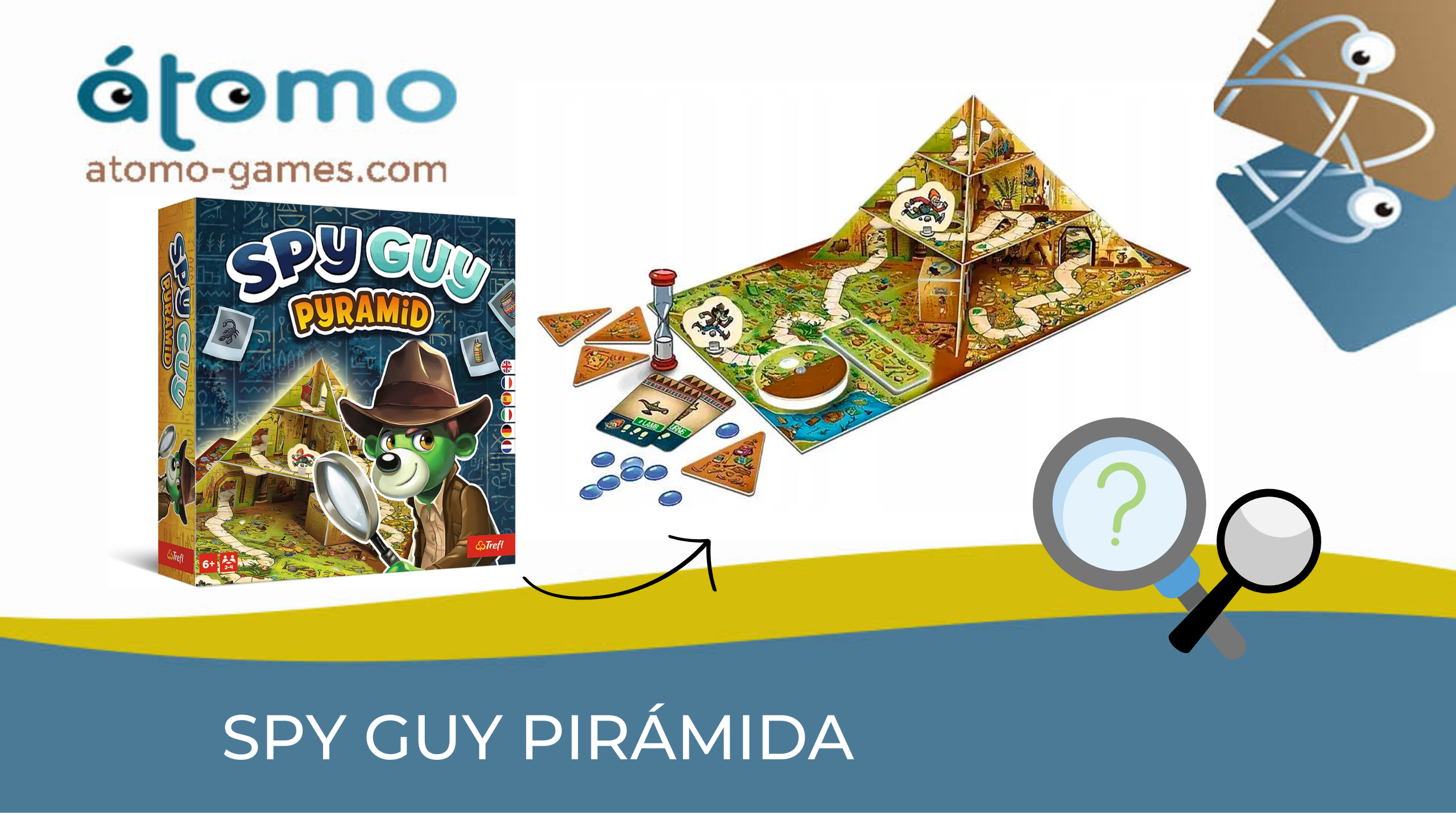 Spy Guy Pirámide es un juego de observación en el que exploras una pirámide muy antigua. Durante el juego os desplazaréis por un gran tablero en 3D para poder descubrir pistas ocultas. Sin embargo, a medida que descubráis algunas de ellas, ocultarás otras. ¡Esto hará que el desafío sea mucho más exigente!